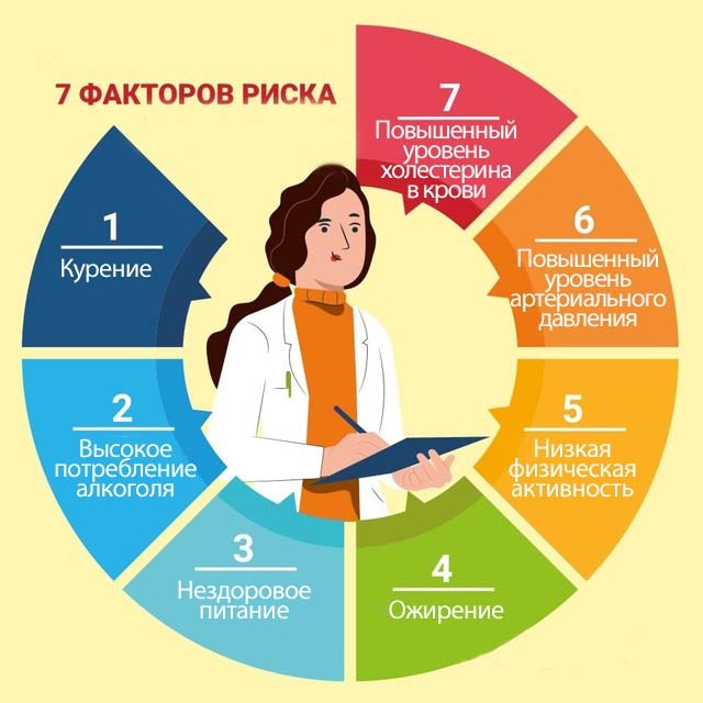 50% вклада в развитие ХНИЗ вносят основные 7 факторов риска: