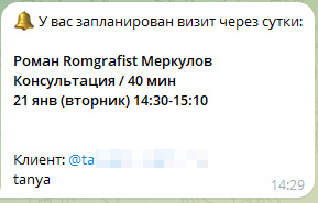 Когда я начал использовать Visittime в своей тату-студии, честно говоря, не ожидал, что эта платформа так сильно повлияет на мой бизнес. Теперь хочу поделиться своим опытом и рассказать, как именно этот сервис помогает мне зарабатывать больше. Благодаря автоматическим напоминаниям, которые отправляет Visittime, мои клиенты практически перестали забывать о своих записях. Уведомления через телеграм работают идеально, и пропуски стали большой редкостью. Это особенно заметно в расписании — раньше были пустые дни, а теперь такого почти не случается. Уведомления отправляются клиенту и мастеру за сутки до сеанса и за три часа. Сам теперь тоже не забываю приехать в студию заранее. Я, как владелец бота, вижу все уведомления. Visittime буквально спасает, когда нужно грамотно распределить записи. Я теперь не занимаюсь распределением записей и не нуждаюсь в администраторе. Visittime знает количество рабочих мест в студии и большее количество клиентов не запишется на одно время. Мы просто скидываем