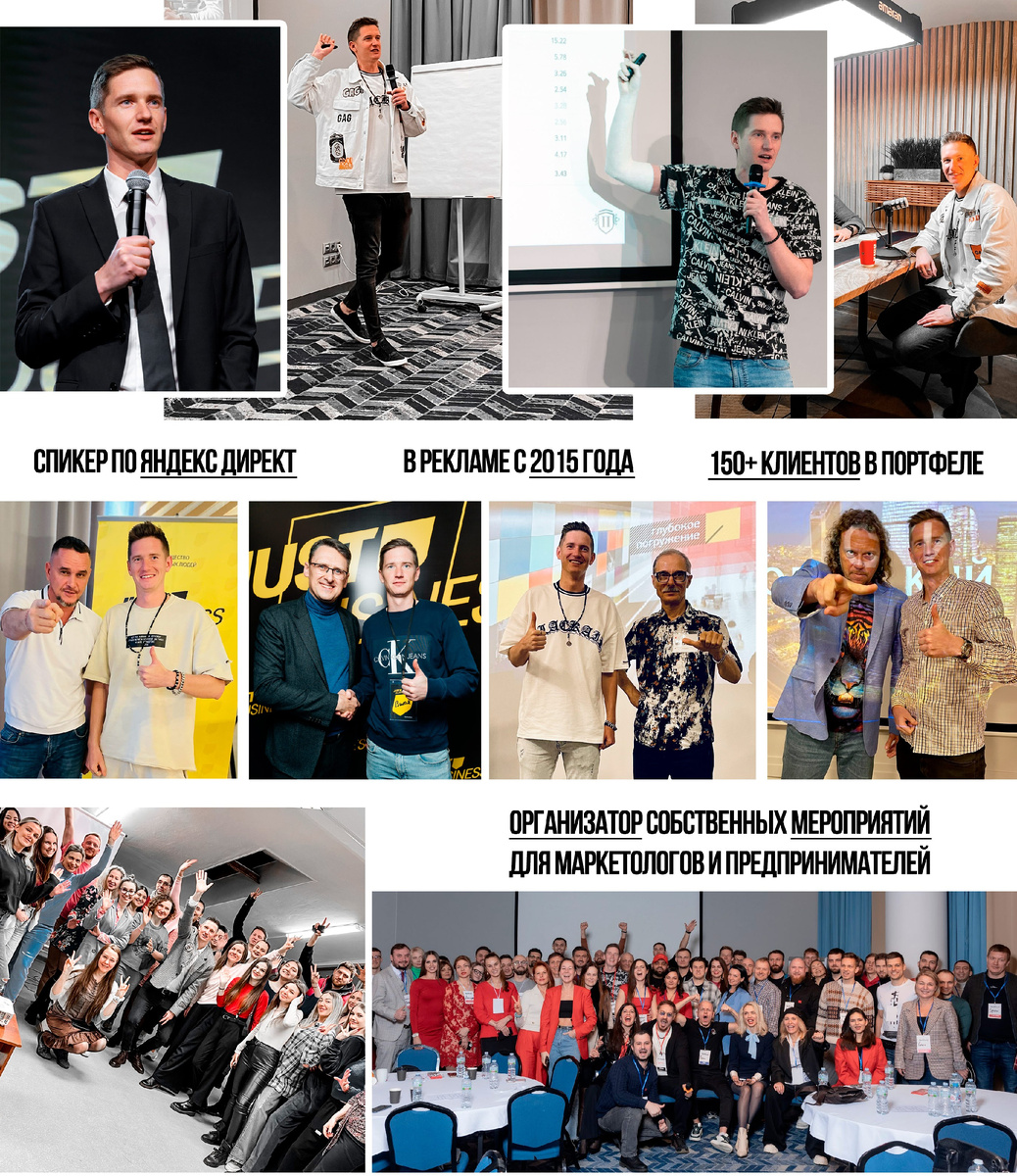 Меня зовут Виктор Писаревский (Мой телеграм), я эксперт по настройке и запуску рекламы в Яндекс Директ. Являюсь владельцем рекламного digital-агентства с оборотом рекламного бюджета более 1 млн. $ На рынке интернет-маркетинга - с 2015 года (10+ лет) без перерывов Портфель клиентов: 150+ проектов выполнил лично Опыт работы с рекламными бюджетами: от 30 000 до 8 000 000 р. на проект в месяц Спикер конференций по интернет-рекламе, автор курса "Яндекс Директ для онлайн-школ в России 2024", регулярно провожу обучения для маркетологов и предпринимателей по Яндекс Директ - как приглашённый спикер Я умею продвигать автовебинары, вебинары, telegram-каналы, тг-ботов и рассылки, марафоны, мероприятия для онлайн и оффлайн-школ. Собираю мероприятия не только клиентам, но и себе! И на собственном опыте - знаю, что такое - вкладывать свой собственный бюджет в рекламу. Среди моих клиентов (По продвижению вебинаров / автовебинаров / марафонов и др. воронок продаж) ...а также: и другие направления! Скор