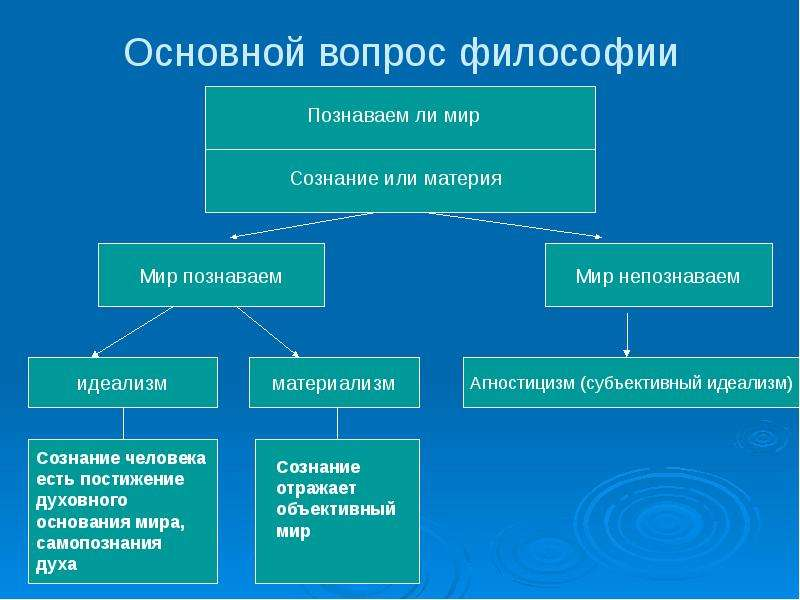 С основного вопроса философии и начинается сама по себе эта наука. Без ответа на основной философский вопрос ни одна более-менее внятная философская система не может быть сформирована.