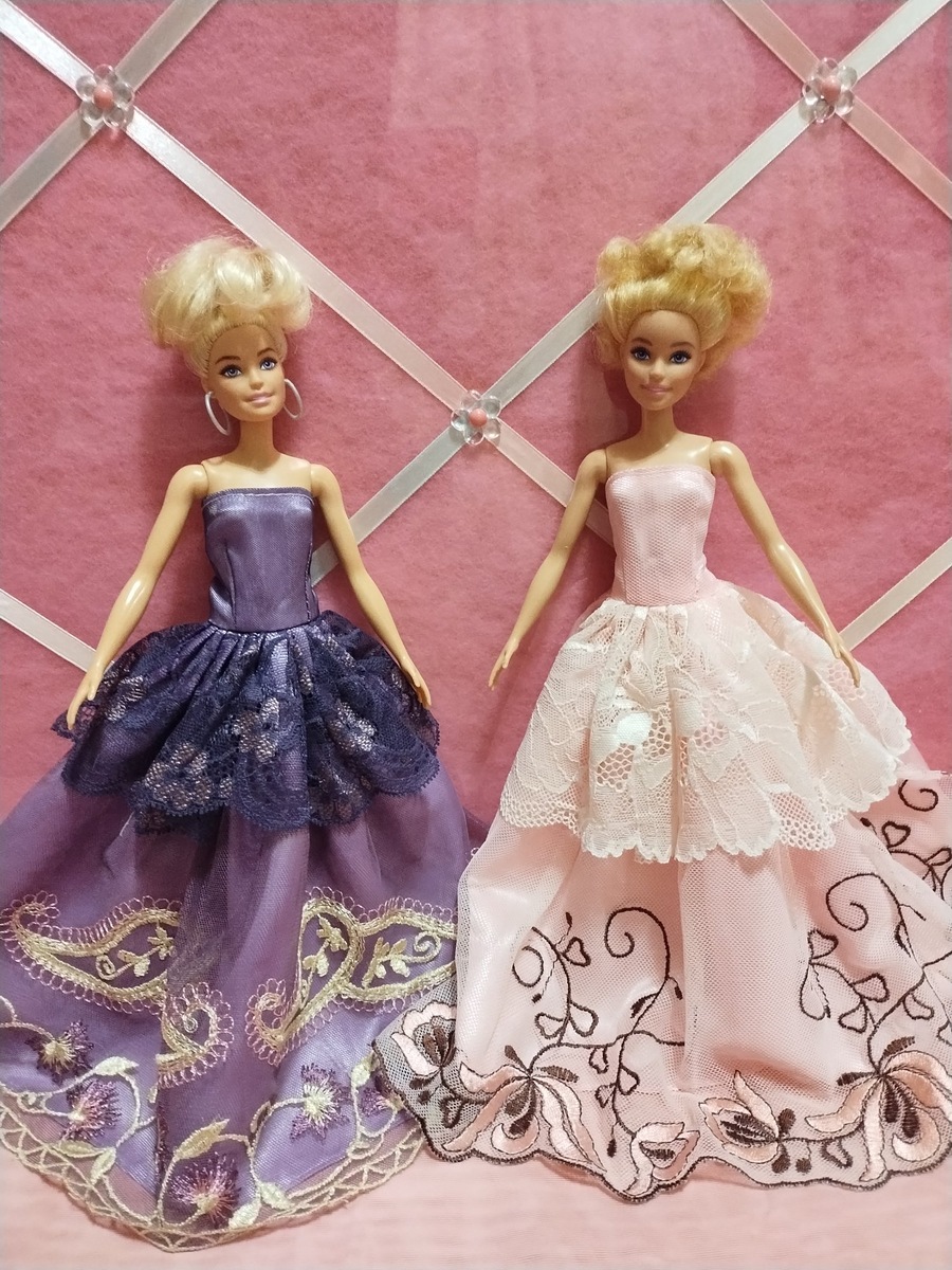 Две куклы Барби в бальных платьях. Этюд в пастельных тонах.