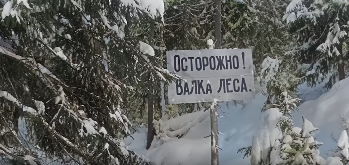 И хотя валят хвойные породы, в картине звучит песня о другом дереве, о клёне. *Старый клён*.