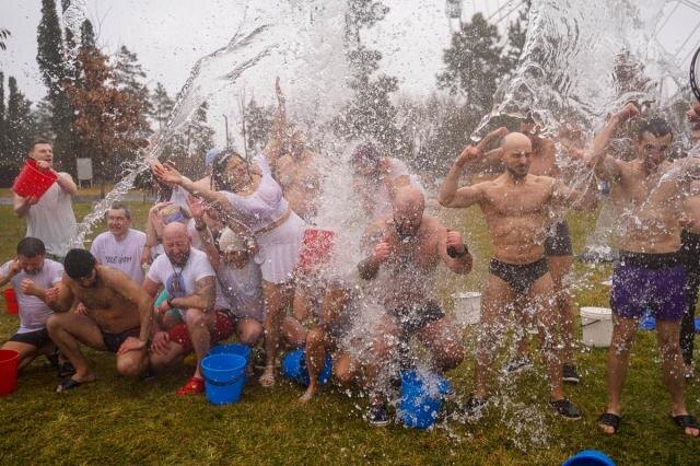 Около 30 волгоградцев и тамбовчан (спортклуб «Коловрат» из Тамбова выступил одним из организаторов мероприятия) в купальных костюмах сделали небольшую зарядку, чтобы разогреться, и облились из ведер ледяной водой.