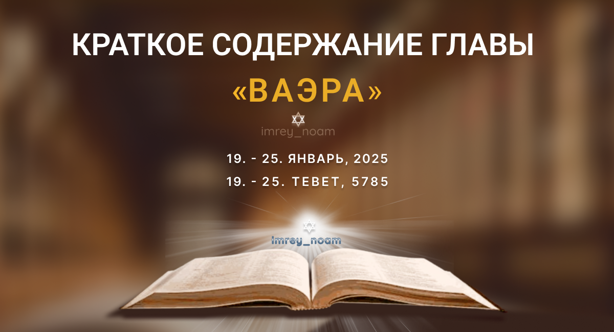 Шмот (Исход) 6:2 - 9:35 Всевышний являет себя Моше и обещает вывести Сынов Израилевых из Египта, избавить их от рабства, спасти их и взять себе избранным народом у горы Синай, а также привести их в Страну, которую Он обещал праотцам во владение вечное. Моше и Аарон несколько раз являются к фараону, требуя от имени Б-га: "Отпусти народ Мой, чтобы они послужили мне в пустыне!" Фараон всякий раз отвечает отказом. Посох Аарона превращается в змея и пожирает волшебные жезлы египетских колдунов. Вслед за этим Всевышний насылает казни на Египет. Воды Нила превращаются в кровь. Полчища жаб заполоняют землю. Вши заводятся у людей и животных. Стаи диких зверей вторгаются в города. Домашние животные гибнут от мора. Нарывы покрывают египтян. Град с огнем обрушивается с небес. И тем не менее - "ужесточилось сердце фараона и не отпустил он Сынов Израилевых, как и предупреждал Б-г Моше" 👉https://imrey.org/tag/глава-ваера