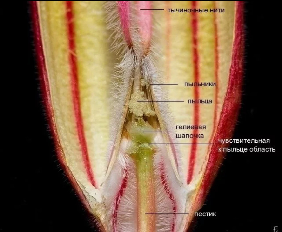 * Аккуратно раскройте лепестки цветков обоих растений, чтобы увидеть основания тычинок и пестиков.