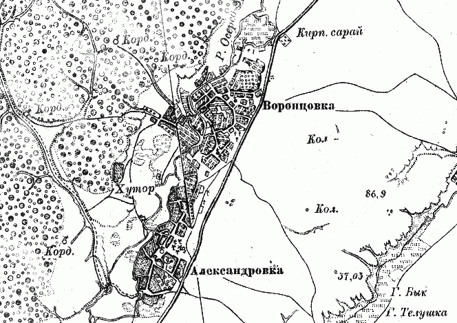 Слобода Александровка, находится рядом со слободой Воронцовкой. Принадлежала Александровка, так же , как и Воронцовка графу А. Р. Воронцову и названо по его имени.