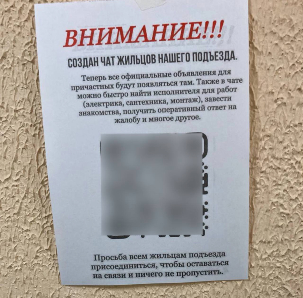 Мошенники клеят объявления по подъездам с приглашением вступить в чат для жильцов. После сканирования кода скамеры получали полный доступ к аккаунту.