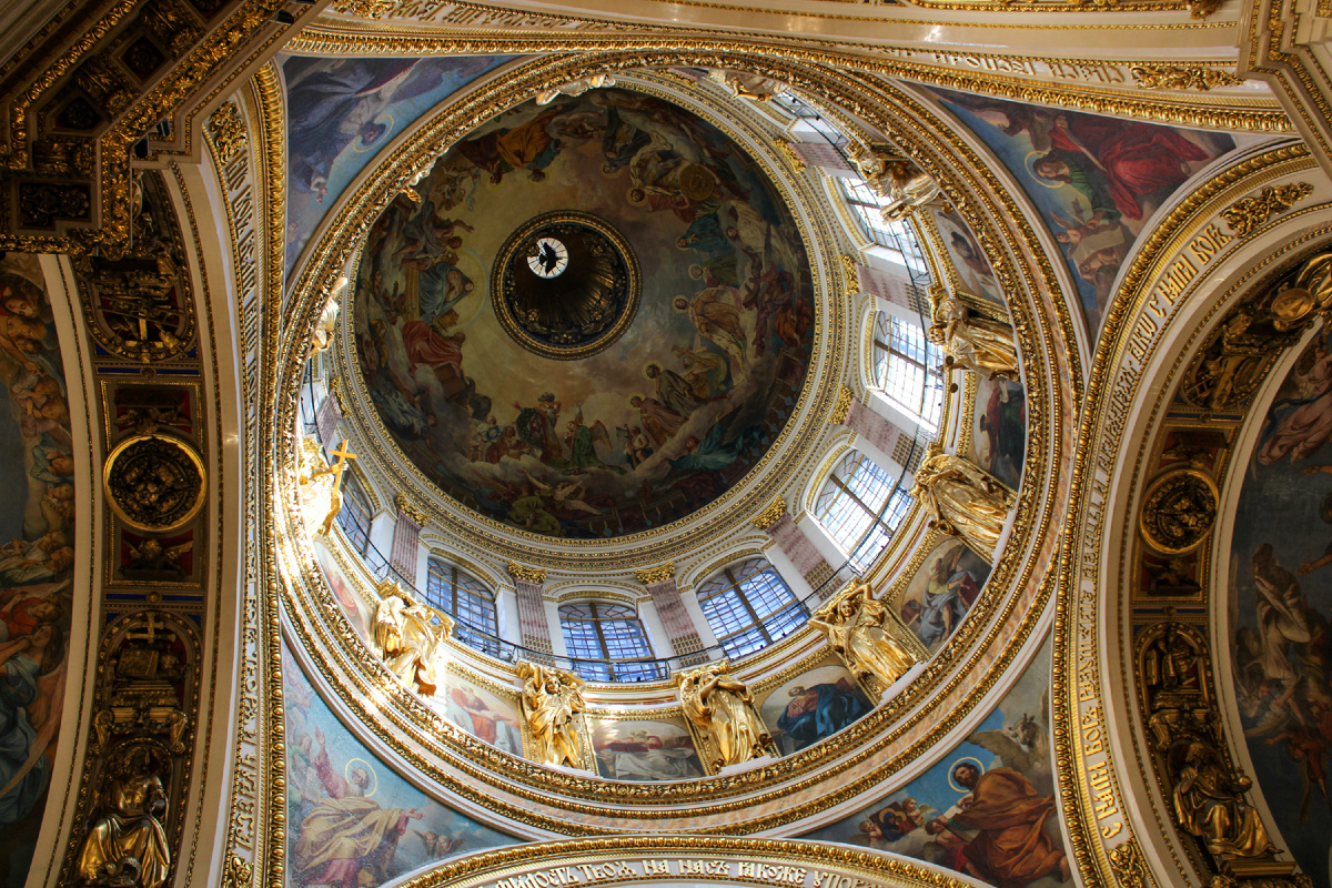 Исаакиевский собор - один из самых известных храмов Санкт-Петербурга и символов города. Он всегда мне казался мрачным. Относительно тёмные тона, тяжёлые колонны. Массивное основание. Узкие высокие окна. Вот такая ошибка восприятия у меня. Собор не похож на большинство православных храмов России. Я сильно удивилась, когда оказалась в храме (после подъёма на колоннаду). Интерьер по-настоящему роскошный. Скульптуры, колонны, лепнина. Очень нравится плафон купола. Его балюстраду украшают 24 статуи ангелов (И. Герман). Мне кажется, что интерьер чрезмерно роскошный. Всё-таки, это храм. Перестарались. Наверное, в соборе можно провести целый день, если рассматривать каждый элемент. Вполне возможно, что понадобится два дня и больше. Я фотографирую, чтобы потом спокойно всё рассмотреть. Конечно, я не смогу опубликовать все фотографии интерьера. Их очень много. Несмотря на то, что я сфотографировала не все элементы. Два раза посещала Исаакиевский собор. Очень хочу посетить его ещё