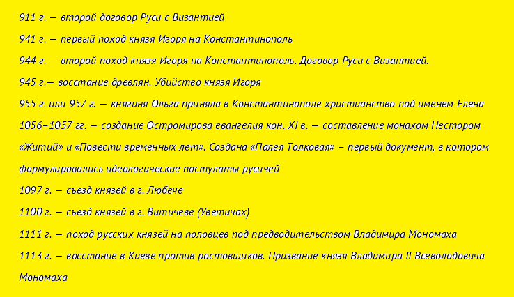 1056–1057 гг. — создание Остромирова евангелия кон. XI в. — составление монахом Нестором «Житий» и «Повести временных лет». Создана «Палея Толковая» – первый документ, в котором формулировались идеологические постулаты русичей