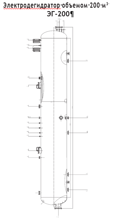 Электродегидратор (ЭГ) объемом 200 м³, как правило, используется для удаления воды и других нежелательных примесей из углеводородов, таких к