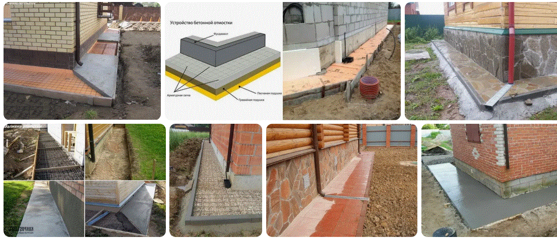 Слышал что для крепости и долговечности фундамента дома большое значение имеет правильно выполненная отмостка. Пока слабо разобрался с вопросом что это вообще такое и каким именно образом она помогает защищать фундамент от разрушения. Просьба рассказать об этой теме подробнее с описанием того как нужно ее делать и из каких строительных материалов. Было бы не плохо увидеть отзывы от людей которые уже делали ее сами и могут поделиться своими наработками. Отмостка фундамента дома это гидроизоляционная полоса, примыкающая к фундаменту дома по всему внешнему периметру. Основное ее назначение сохранять фундамент и находящийся рядом с ним грунт в сухом состоянии. Но некоторые строители относятся к отмостке как к некоторому участку у фундамента для слива воды за его пределы. Они делают саму отмостку из бетона но не достаточно широкой, из за чего она не выполняет свою роль.