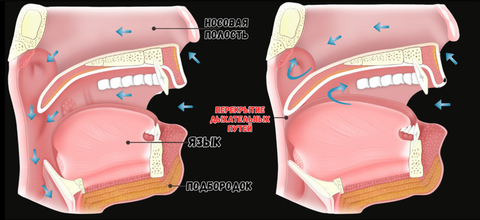 На картинке с МРТ отлично видно разницу в уровне жира и размере языка, а также механику процесса.