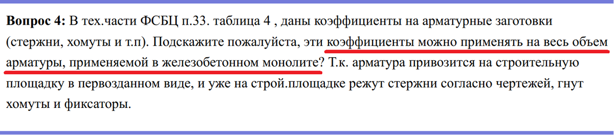 И вновь вопрос про арматурные заготовки: Точнее, вопрос про применение коэффициентов на арматурные заготовки, приведенных в пункте 33 технической части ФСБЦ-2022: Ответ прост: коэффициенты применяются не на весь объем арматуры, применяемой в железобетонном монолите, а только к объему для которого в проекте указано "армирование выполняется заготовками" или "...стержнями" (или т.п.). Если в проекте не указано подобное (или вообще ничего не указано), то эксперт может исключить данный коэффициент как "не предусмотренный проектом". Насколько данный момент будет правомерным или неправомерным - это уже ответственность эксперта. Кроме того, следует обращать внимание на состав работ сметных норм, с применением которых определяются затраты на монолитные железобетонные конструкции: