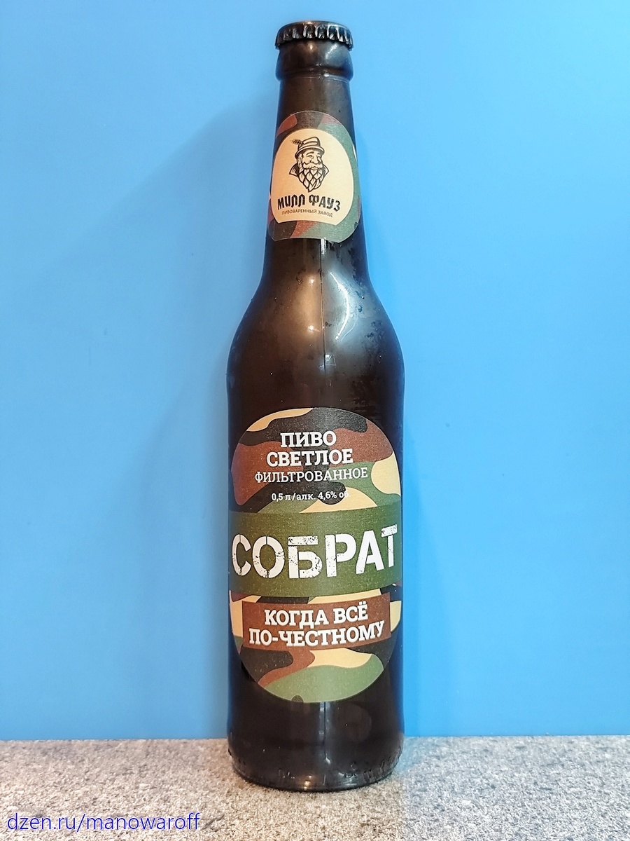 Сегодня у нас внезапно пивоварня "Милл Фауз" из Минвод, чью продукцию я встречал исключительно на югах. Но на днях наша местная сеть разливаек "В пене" устроила аттракцион неслыханной щедрости, раздавая покупателям на халяву бутылки пива "Собрат" от вышеупомянутой пивоварни. Причина этого аттракциона стала понятна после взгляда на срок годности (120 суток) пиваса, который заканчивался дней через пять. При этом, разумеется, в холодильнике его никто не хранил. Учитывая, что пиво у этой пивоварни и так весьма посредственное, то, скорее всего, сегодня нас ожидает ужасный ужас. Ладно, морально подготовимся, почитаем описание пива и приступим к дегустации: Пиво имеет светло-золотистый цвет и отличается тонкой хмелевой горечью. Вкус уравновешивается легкой сладостью и выразительным солодовым профилем. Обладает приятным сладковато-солодовым послевкусием. ТТХ: Пиво прозрачное, пены не особо много, опадает шустро. Пахнет солодом и едва заметным хмелем. Вкус солодовый, с небольшой кислинкой от п