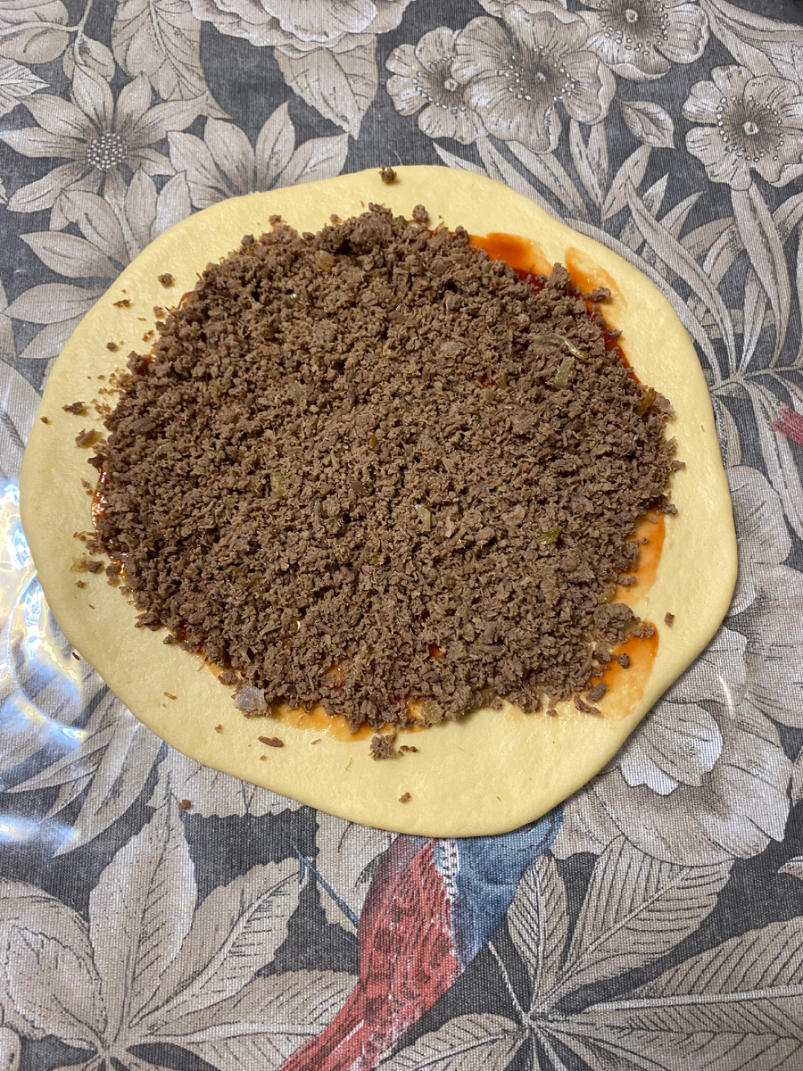 Дети любят гамбургеры? Тогда этот пирог точно войдет в их меню. Вкусный, сочный, а главное ничего сложного, да и все продукты можно найти в холодильнике. Тесто: Из этого количества продуктов получается 2 пирога. Я всегда беру половину ингредиентов. Для начинки: Приготовим тесто: Начинаем замешивать тесто, постепенно добавляем муку. Тесто должно немного липнуть к рукам. Ставим тесто в теплое место, накрываем полотенцем и ждём, когда тесто увеличится в 2 раза. Делаем первую обминку. Снова даем подойти тесту. Раскатываем тесто в круг. Смазываем кетчупом. у меня домашний кетчуп. Выкладываем начинку: Рассказываем еще один пласт теста, выкладываем сверху, защипываем края. Смазываем желтком ( для золотистой корочки, я обычно от одного яйца оставляю желток). Приятного аппетита.