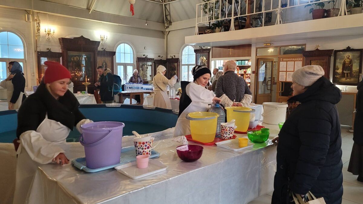 Раздача святой крещенской воды прихожанам храма и жителям района была организована внутри храма. Активные прихожане, по просьбе настоятеля храма, помогали людям в наборе святой воды и разъясняли, как следует правильно, с благоговением использовать ее в течение всего года.