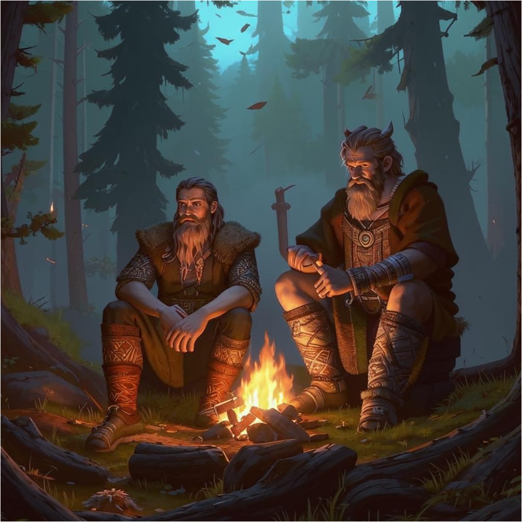 А посмотреть было на что. Деревья, которые росли вдоль тропки, становились все выше и толще. Мох между корней у их подножия сменился на прелую листву, которая кое-где оголяла корни, и те торчали из темной листвы светлыми костями. А потом неожиданно деревья стали ниже, но при этом стали расти все чаще и чаще. Когда на небе уже взошла луна, а темень вокруг стала непроглядной, мы вышли на небольшую полянку, где и решили заночевать. За ветками далеко ходить не пришлось. С помощью огнива развели небольшой костерок, погрели чайник, достали пару банок тушенки. Даже палатку разложили, Баюн, правда, был против.