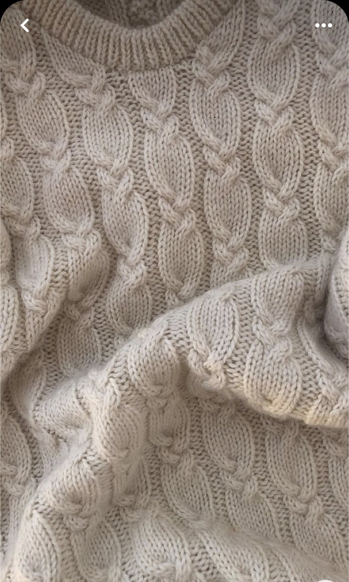 Всем доброго дня! Сегодня продолжение рубрики «Дневник вязальщицы». И в этот раз, я расскажу о своем новом проекте - джемпере с косами. Решила я связать себе новенький джемпер. Задумывался он объемным, размера на три больше , чем обычно я ношу. В общем, оверсайз. Начала поиски модели. Искала именно косы. Понравился вот такой узор - довольно частые переплетения, при этом коса смотрится оригинально. Схемы нет, но глядя на узор и так все понятно, как это вяжется. Подобрала пряжу - гребенной меринос экстафайн. Производство Германия. Сейчас, после того, как связана большая часть изделия, могу смело сказать - очень качественная пряжа. К тому же она настолько мягкая и приятная - вязать из неё огромное удовольствие. Цвет пряжи - пудовое небо. Брала по цене 2500 ₽ за 500 грамм. Это совсем недорого для такого качества. Вяжу на деревянных спицах номер 4. Нить вяжу в четыре сложения ( для удобства перемотала в один моток на моталке для пряжи). Конечно же, для начала, связала образец, пост