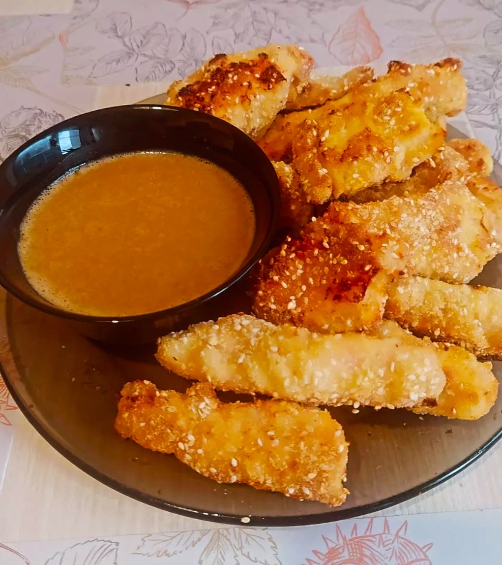 Я так увлеклась кулинарной темой, что не могу остановиться😆 предлагать вам различные рецепты. Как у любой хозяйки всегда есть секретные блюда, рецепты, и она не очень хочет делиться ими со всеми😏. Я же готова рассказать вам о своих секретных блюдах, которые на мой взгляд, уникальны. 🍗 Кто не любит запечанную курочку?! Я думаю, многие любят. Познакомлю вас с ещё одним интересным рецептом приготовления куриных грудок. 💥А какой здесь соус?! Как говорят мои дети: «Просто отвал башки!» Это блюдо они заказывают на каждый свой день рождения. Мясо в хрустящей панировке с пикантно-сладким соусом из арахиса понравится вашим близким и гостям😍 👍 Идеальная добавка к этому блюду — это нарезанные соломкой сырые овощи, которые являются идеальным источником большого количества витаминов. Подготовка: 20 мин Приготовление: 10-15 мин Кусочки курицы можно подавать с разными соусами, например, с йогуртом и зеленью или с холодным томатным соусом. 👌Вкус этого блюда, особенно соуса,