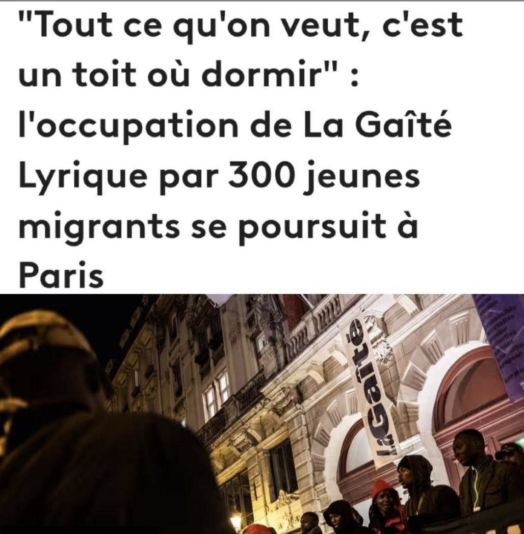 Мигранты заняли парижский театр. Африканские подростки, приглашённые на конференцию о беженцах, остались в La Gaîté Lyrique уже на второй месяц. Они отказываются уходить, требуя жильё, и парализовали работу театра. Дирекция обратилась к властям, но решения нет, а выселять 300 человек зимой считают негуманным. @motivatoru