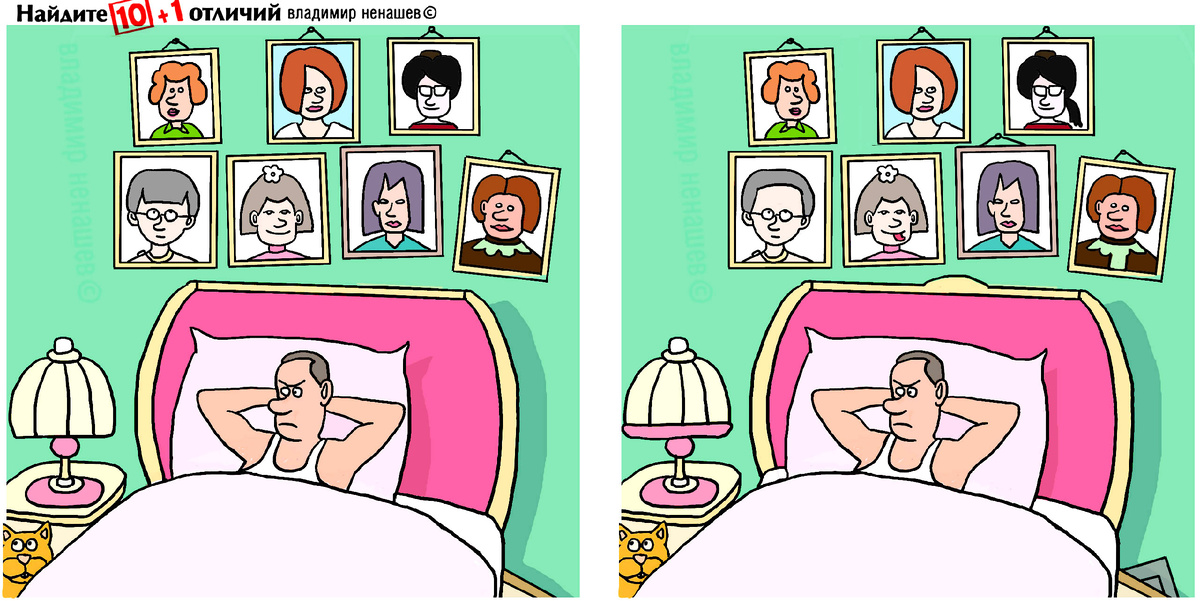 Всем привет! Есть о чем вспомнить герою сюжета. На стене портреты, в голове воспоминания. Нам же надо найти 11 отличий, прияем за пару минут. Удачных поисков! Ответ