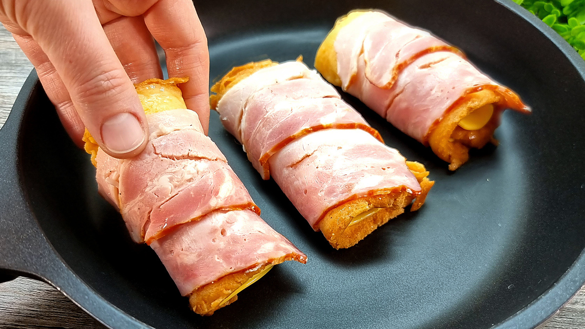 Простой, быстрый и легкий рецепт завтрака. Ингредиенты самые обычные, но в результате получается необычно вкусный и сочный завтрак или ужин, как больше нравится! Главное - готовить с удовольствием! Ингредиенты: несколько ломтиков хлеба; бекон; черный молотый перец; 2 яйца; соль; сыр;