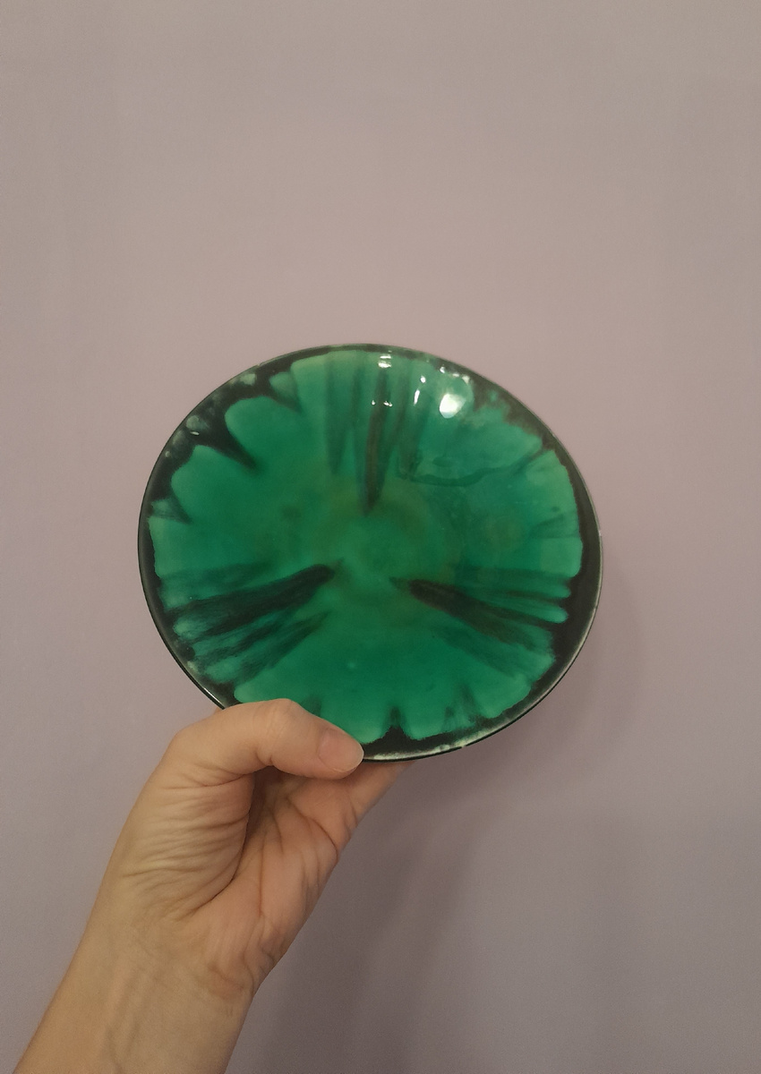 Начало тут 👇. Продолжаю рассказ про очередную добычу. Покажу посуду и немного пластинок. Керамическая тарелочка. Первая мысль - ЗиК. Как будто бы "Арбуз", только зелёный. А вот и нет. Бакинский керамический завод. Нашла с большим трудом. Кофейные пары, Китай. Хрустальное блюдо. У нас уже такое было. Ещё вот такая тарелочка. Вполне пойдёт как декоративная настенная, например. Есть специальные крепления, на массмаркетах везде продаются, которые держат тарелку и не портят её. Вот такие классные тарелочки. Чехия. Практически в идеальном состоянии. Огромный плюс - можно ставить в микроволновку. Было 9 плоских тарелок, выложила как 6 штук и 3 штуки двумя объявлениями. И ещё две глубоких таких же. Казалось бы, две одинаковые тарелки (☝️ и 👇). А вот и нет. Масштаб рисунка разный. Хотя размер тарелок одинаковый. Это ЗиК, как вы, думаю, догадались. Ещё ЗиК. Ещё пять тарелочек ЗиК. Две чашечки Дулево "Голубая роза". Блюдечко Дулево. С посудой всё на сегодня, вечером следующую "партию" (следу