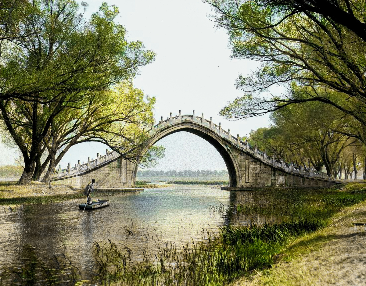 Мост нефритового пояса и лодка. Летний дворец, Пекин, 1924 год.