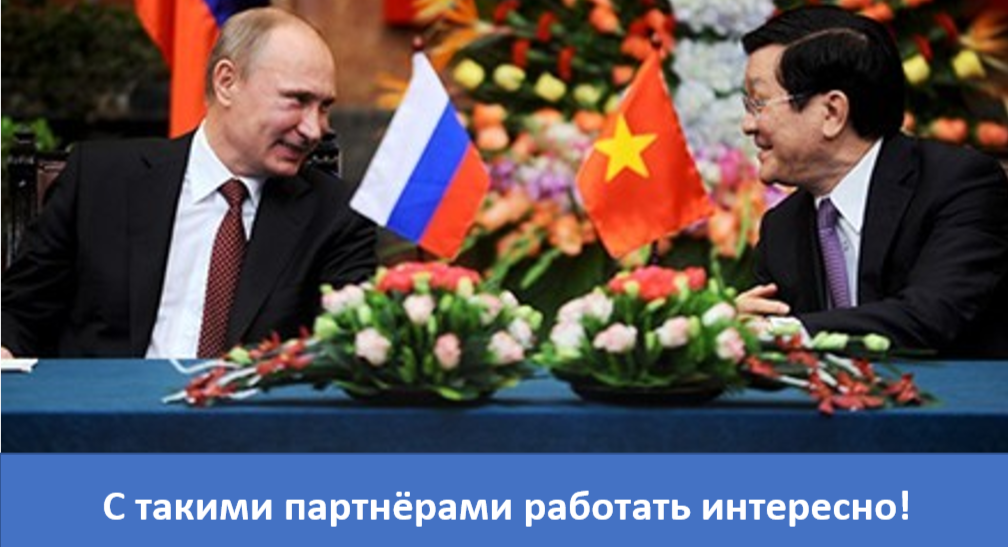 Здравствуйте, мои дорогие читатели. Снова пьём душистый чай с пряниками и наслаждаемся хорошими новостями. На днях было подписан комплексный план по развитию сотрудничества до 2030 года между Россией и Вьетнамом. Стороны подписали "совместное заявление, коммюнике, меморандумы о взаимопонимании в области радиоэлектронной промышленности и цифровых технологий, а также цифровой трансформации и цифровой экономики, программу в области культуры..." В приоритете наращивание торгово-экономического взаимодействия. Наши государства успешно работают по реализации совместных проектов в энергетике, включая большие программы развития мирного атома, а также в промышленности, научно-технической и гуманитарной областях. Огромный потенциал виден в запуске инвестиционных проектов с обеих сторон. Для этого страны договорились об устранении торговых барьеров. Взаимное исключение пошлин будет большим прорывом. На самом деле это историческое событие, т.к. план предусматривает развитие по 13 отраслям экономики