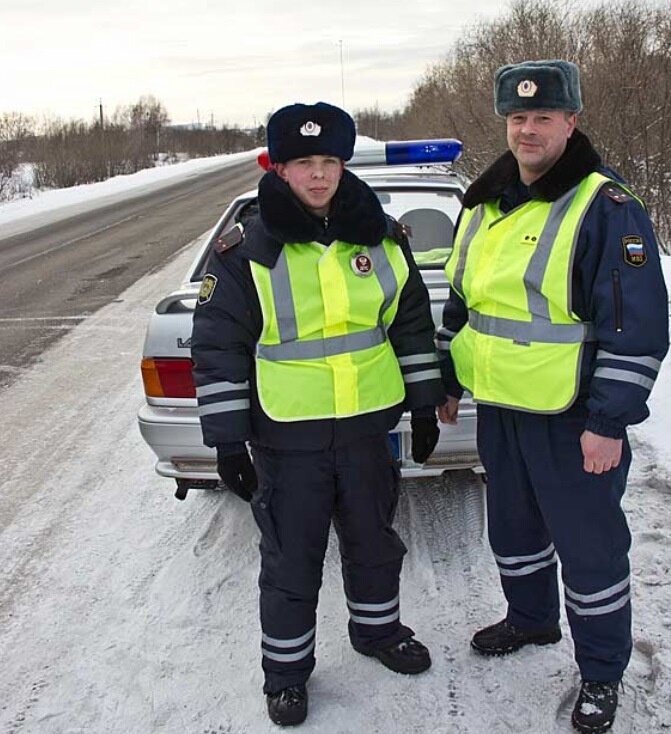 -А вон дед на велосипеде по снегу едет, а резина у него наверняка летняя, давай оштрафуем - пошутил напарник