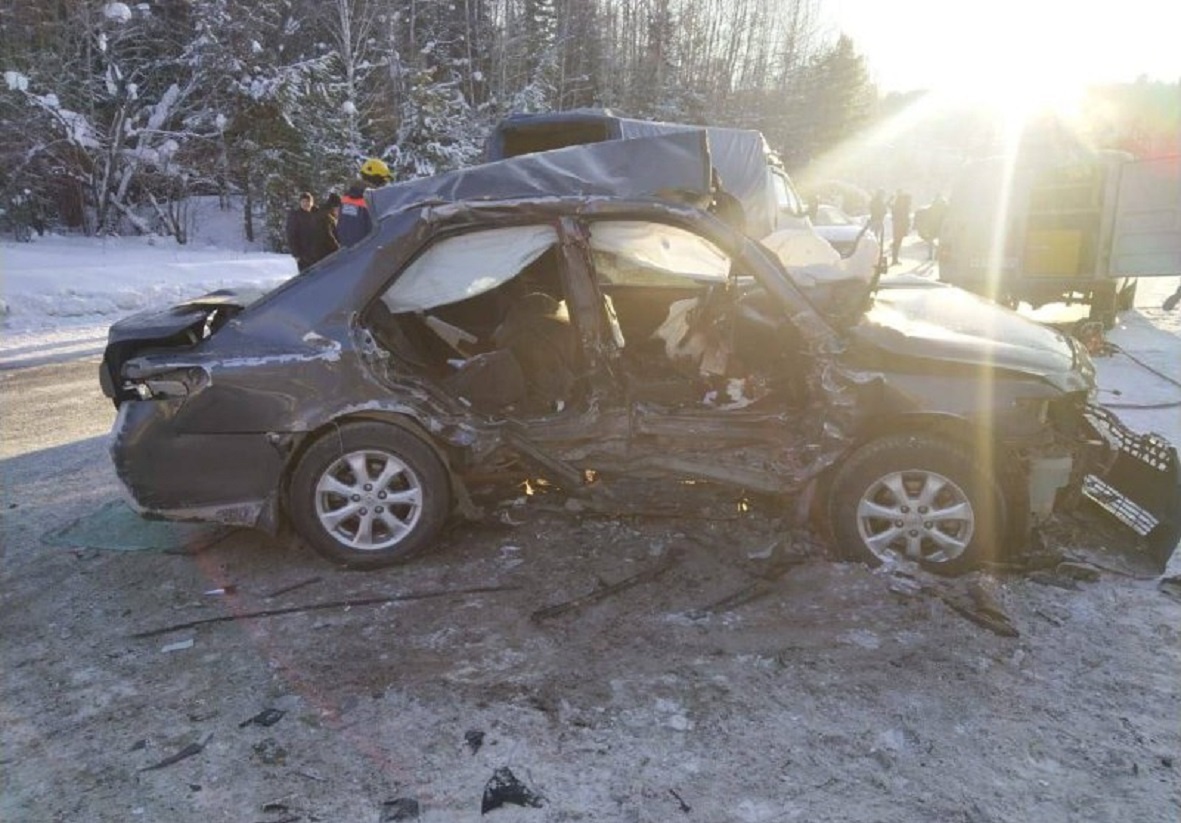 На трассе в Красноярском крае в лобовом ДТП погибли пожилой водитель и его пассажир