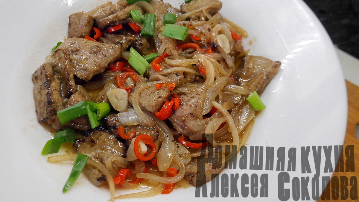 Доброго вам дня, дорогие любители «быстрых» субпродуктов! 😊 Хотя, из подобной категории я знаю только печень, остальные животные и птичьи запчасти готовятся подольше. В комментариях ко вчерашней записи про мою новую любимую сковороду говорил, что следующая цель – куриная грудка по методу стир-фрай, но потом передумал по двум причинам. Куриную грудку я не люблю ни в каком ее воплощении. А вот печень люблю любую. И за грудкой нужно было бы идти в магазин, а печень – вот она, на кухне, в отсеке холодильника для дефростации. Поэтому, как любой уважающий себя любитель печени, в половину восьмого утра пошел готовить себе на завтрак печень. Это рецепт про вок. В обычной плоской сковороде повторить будет сложно. Хоть и возможно. И, нет, этот тот рецепт, когда печень вымачивают в молоке, потом делают с овощами – это другой рецепт 😊 ПОНАДОБИТСЯ Говяжья печень Репчатый лук Мука Кукурузный крахмал Соевый соус Соль (По желанию) перец чили, чеснок КАК ГОТОВИТЬ Печень очистить от пленок и порезать