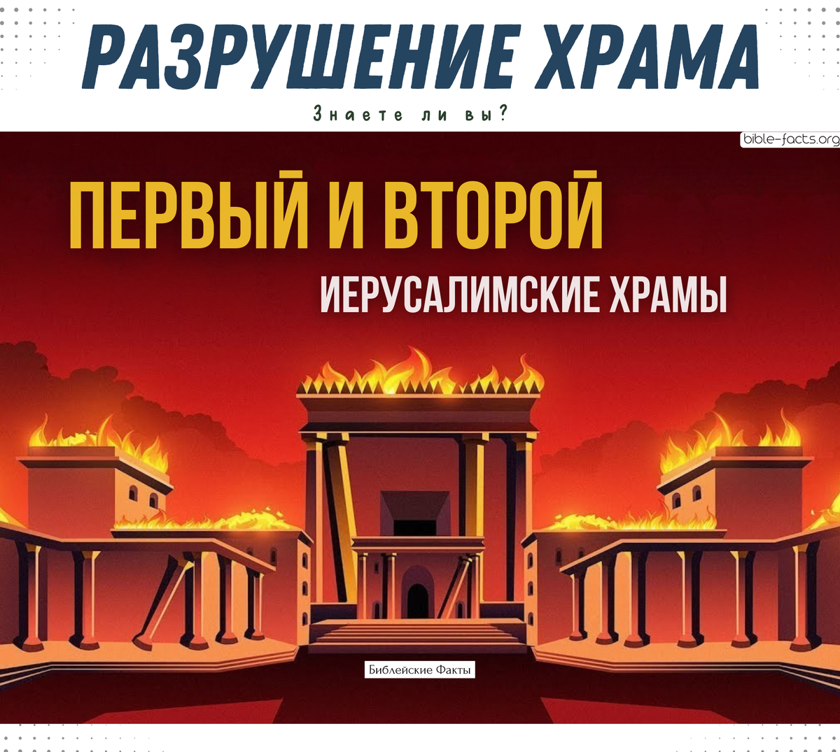 P.S. В еврейской истории было два Храма, построенных на одном и том же месте и разрушенных в один и тот же день календаря — 9 Ава. С тех пор 9 ава считается траурным днем у Иудеев. • Больше интересных Библейских Фактов • Телеграмм канал (Библейские факты) • Библейские факты сайт