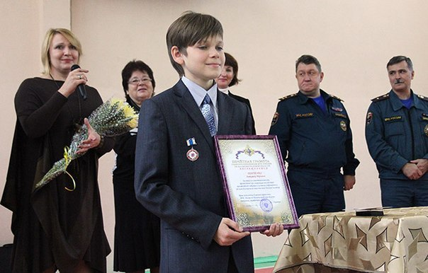 Саша Петченко ехал с мамой в деревню, когда вдруг на ходу у машины лопнуло колесо, автомобиль потерял управление и врезался в дерево на обочине дороги. От вспыхнувшего двигателя начался пожар. От удара мама Саши, находившаяся за рулем, сломала пальцы рук. Она находилась в шоке, весь салон был в дыму. Но ребенок не растерялся: он отстегнул ремень безопасности, помог маме выбраться из машины через окно и только после этого сам покинул горящий автомобиль. Шестикласснику вручены нагрудный знак МЧС России «Участнику ликвидации последствий ЧС» и почетная грамота МЧС по Калининградской области.