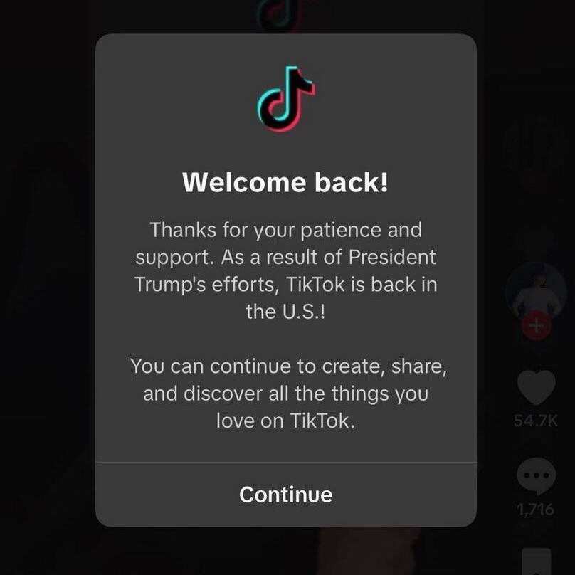 TikTok вернулся в США. В приветствии указано, что это благодаря Трампу. Как же он переиграл демократов.