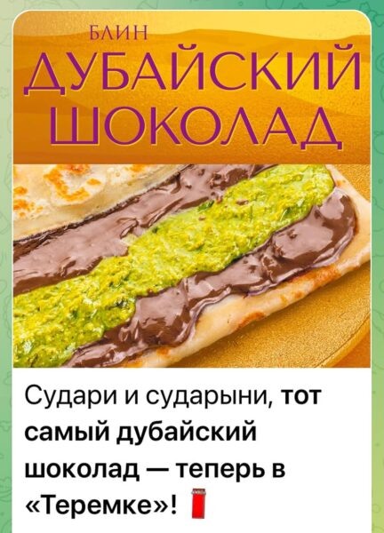 Сеть «Теремок» поддержала тренд на дубайский шоколад и выпустила блин с начинкой, которая повторяет состав популярной сладости, сообщается на сайте сети ресторанов. Что было самым сложным и когда блин с дубайским шоколадом появится в Петербурге. Попробовать блин «Дубайский шоколад», созданный по мотивам культового шоколада из Объединенных Арабских Эмиратов, можно только в четырех ресторанах Москвы: на Новом Арбате и в торговых центрах «Океания», «Калужский» и «Мегаполис», но уже в середине февраля десерт появится во всех заведениях сети, говорит Михаил Гончаров, сооснователь «Теремка». Начинка новинки состоит из топленого шоколада, фисташковой и кунжутной пасты, а также волокон восточного теста катаифи (кадаиф). «Что было самым трудным? Баланс вкуса, наверное! Мы же опытные в производстве. Поэтому все было норм, — сказал Михаил Гончаров «СДП». — Блинчик входит в лидеры продаж среди сладких блинов. Но пока на 4 точках. Ввод на всю сеть в середине февраля. Срочно готовим мощности под тес