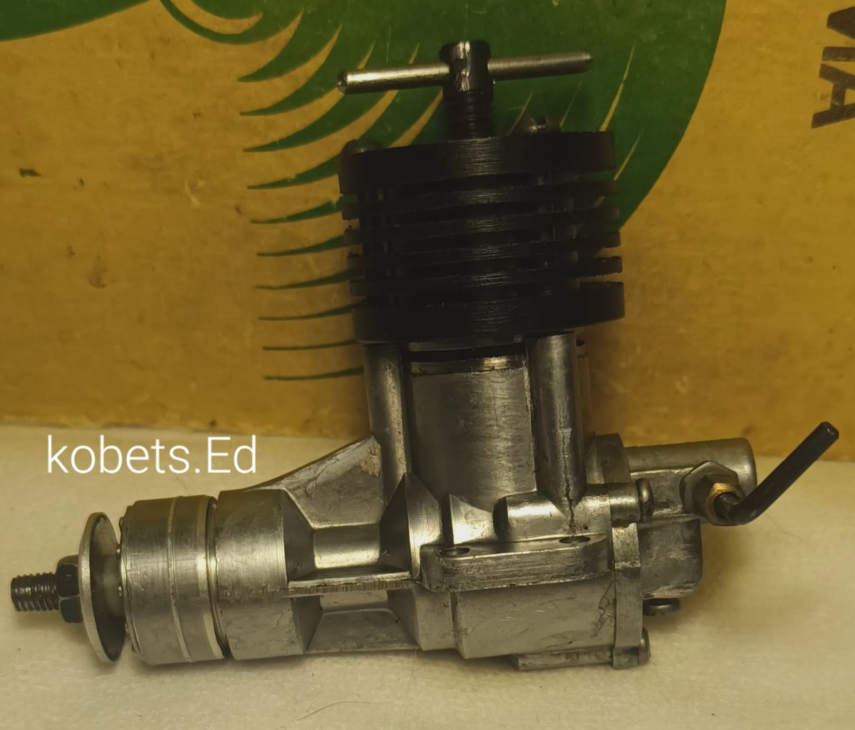 Привтествую. Пару лет назад пополнил коллекцию довольно любопытным и интересным -- и одновременно простым микродвигателем ( многим он знаком по торговой площадке интернета и РС форуму ). Двигатель внешне выглядит отлично, приятно взять в руки, высокое качество литья и хорошая сборка. Но--при разборке появилось много вопросов- кто-где-когда ))) . Изготовление внутренностей- оставляет желать лучшего. Такое ощущение, что автор спешил к какому то мероприятию-конкурсу и не успевал. С одной стороны можно предположить , что мотор из второй половины 50х-участвующий в каком то конкурсе, но не занял призового места и не пошёл в серию. А с другой стороны - можно предположить , что мотор из второй прловины 90х , разработанный для школьников в каком то техническом кооперативе, но так же не вышедшем в серию. Компрессионный микродвигатель с рабочим объёмом 2.47 кб.см.. Ход поршня 14 мм.. Диаметр цилиндра 15 мм.. Масса двигателя 175 гр.. Мощность 0.3 л.с при 12500 об/мин.. Опорная шайба изготовлен