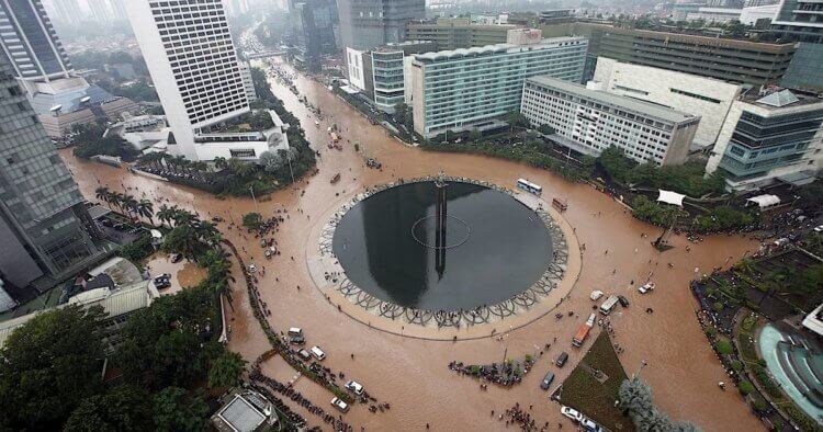 Столица Индонезии, Джакарта, является одним из самых быстро тонущих городов в мире, опускаясь на 5–10 см в год. К 2050 году значительная часть города может оказаться под водой. В ответ на эту угрозу правительство Индонезии планирует перенести столицу.