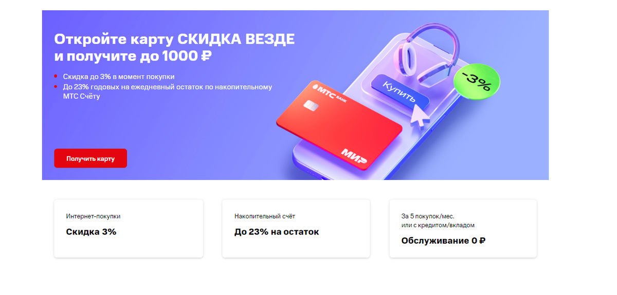 Перейдем к преимуществам дебетовой карты "Скидка везде" от МТС банка: