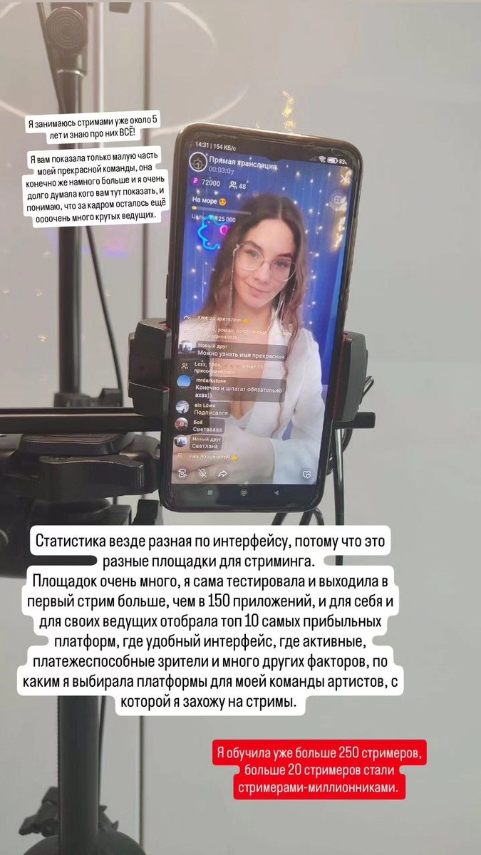 Набирает популярность заработок на стримах. Пока что нисша свободна и зарабатывать на стримах достаточно легко, но с каждым годом конкуренция растет и зарабатывать будет становится сложнее. Везде нужно заходить вовремя. Как когда WB только набирали обороты, те, кто поверил в это и начал действовать - сейчас имеют хорошие результаты , а кто ждал, ждал, и решил зайти, когда уже только "ленивый" не купил товар и не начал продавать на WB и Ozon, то конкуренция выросла и зарабатывать стало сложнее, хорошо , если вышли в 0, а кто-то вообще ушел в минус. Для того, чтобы начать вести стримы - никакого специального оборудования и закупок делать не нужно, даже стационарный компьютер и веб-камера - вам не понадобится. Современный мир стриминга тем и хорош, что для того, чтобы вести стримы и зарабатывать с помощью них не нужно ничего покупать. Чтобы вести стримы нужен только один телефон, но в 2025 году , думаю что телефон с хорошей камерой есть уже у всех и не важно какой у вас телефон андр