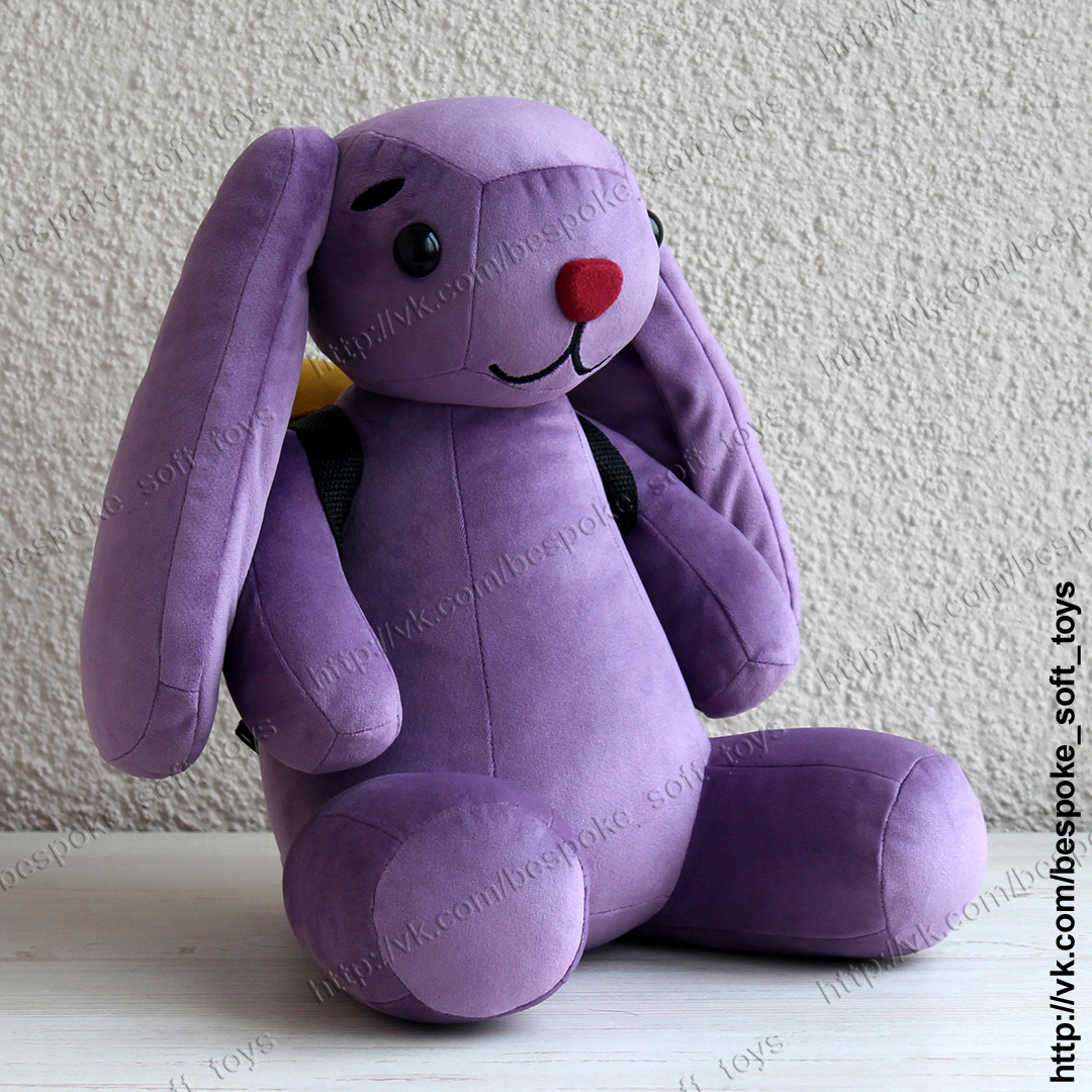 Вот такой получился Заяц. У прототипа голова состояла из двух половинок с одним швом посредине. Но по факту такую округлую форму из двух деталей и без дополнительных вытачек получить нельзя, поэтому у нас голова состоит из шести деталей, а примерное расположение швов соответствует общепринятой концепции, для большинства изготовленных игрушек. Цвет велюра отличается от исходного цвета прототипа – по какой-то причине (вероятно просто не было ничего подходящего в наличии), на тот момент, мне не удалось найти что-то более близкое к оригиналу. А после того как мы изготовили пилотный образец, цвет заказчику понравился и было принято решение ничего не менять и оставить как есть.