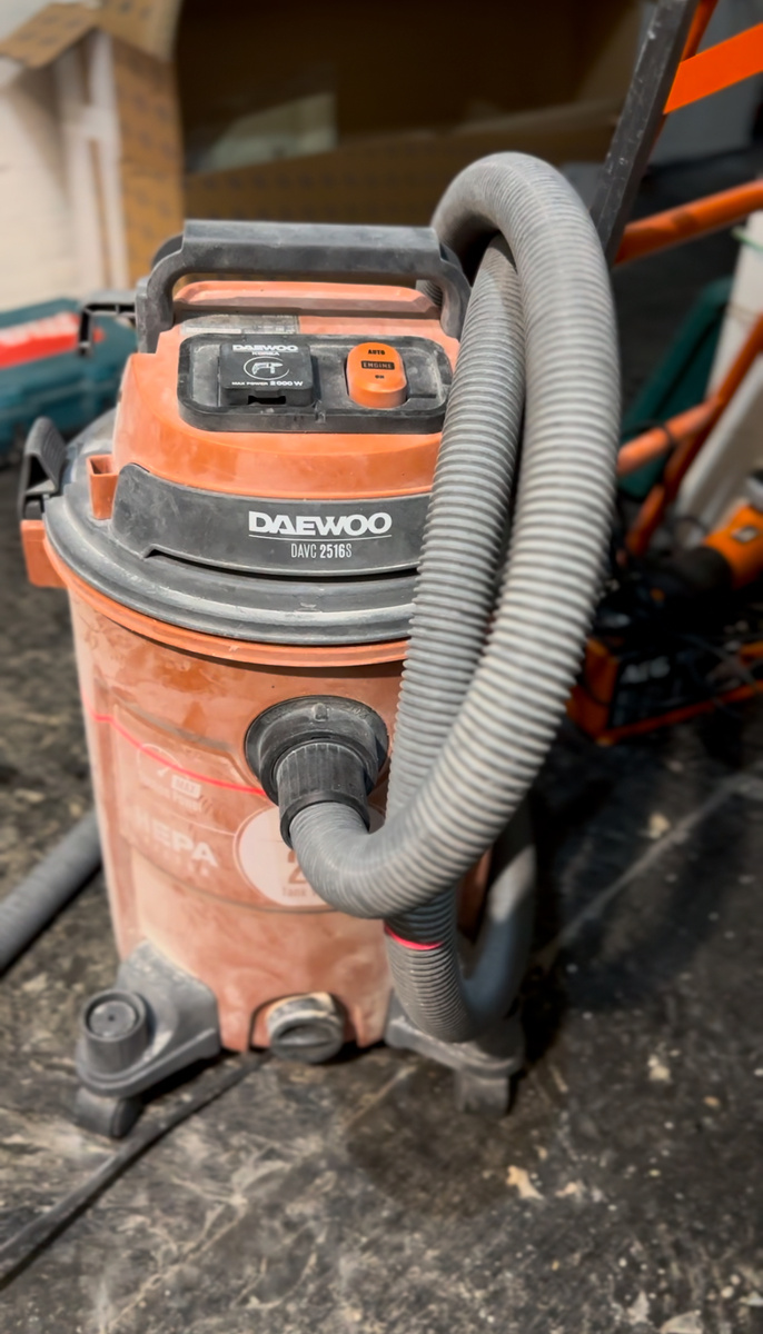 Все мы знаем, когда идут внутренние ремонтные работы дома, образуется много мусора, пыли, чтобы не бегать с щеткой все это заметать/убирать, выбор пал на строительный пылесос от DAEWOO. Мы взяли модель DAEWOO с шлангом 4 м DAVC 2516S. Какие преимущества в данной модели: • Розетка для электроинструмента. Встроенная розетка позволяет подключать к нему электроинструменты. • Автоматическое включение пылесоса при начале использования инструмента и отключение с задержкой для удаления грязи из шланга. • Режим обратного выдувания. Функция обратного выдувания позволяет очистить рабочее место от опилок, стружки и т.д. • Мощность всасывания: 323 Вт В общем, весь строительный мусор на нем, справляется на 5+ Тепловая пушка DENZEL, DHC3-150, 230В, 0.025/1.5/3 кВт,96431 Для внутренних работ на осенний-зимний период купили 2 одинаковые пушки. Пушки небольшие, аккуратные, регуляторы мощности и температуры находятся сверху. Легко наклоняется вверх и вниз, что позволяет регулировать направление возду