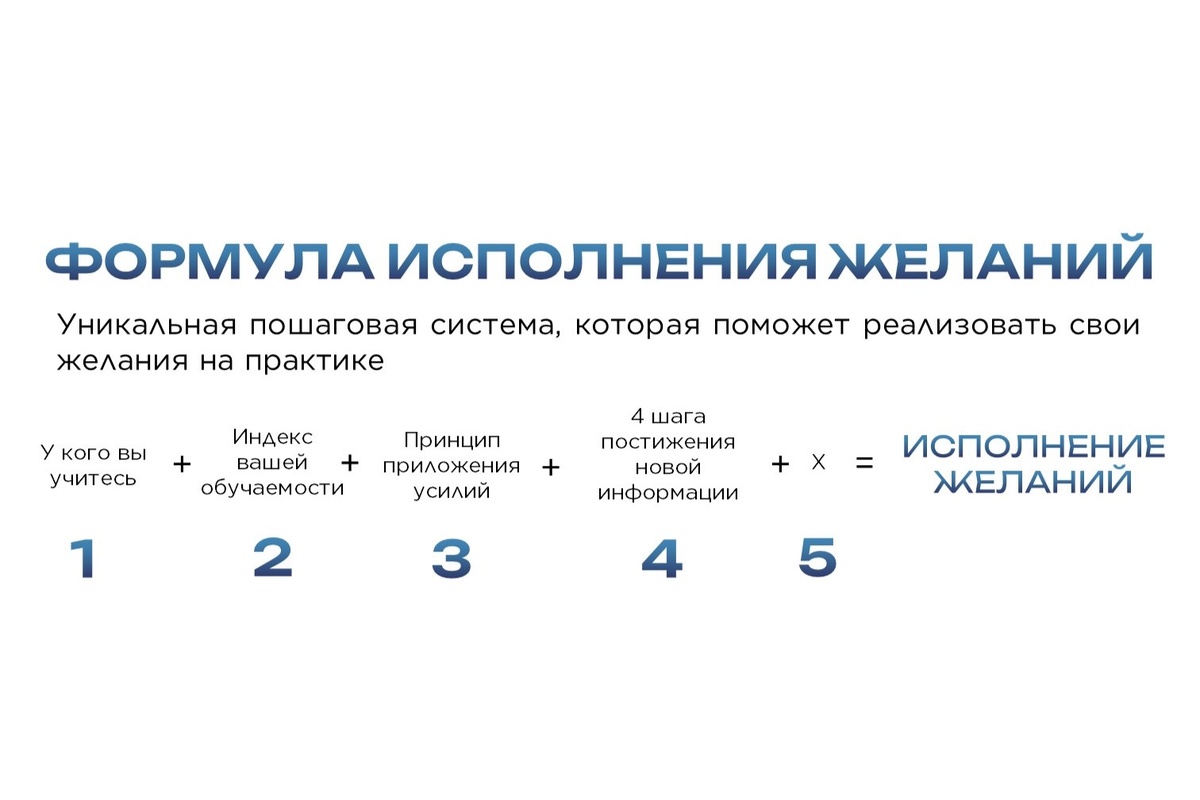 Формула исполнения желаний состоит всего из четырех слагаемых, она невероятно проста и будет интуитивно понятна.