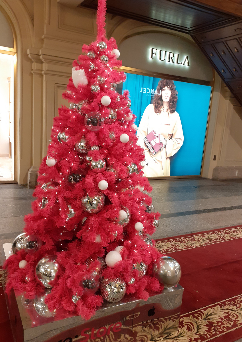 Первое, что я увидела, а заходила я с третьей линии, дальней от Кремля, это розовая ёлка. Ты ж моя прелесть!