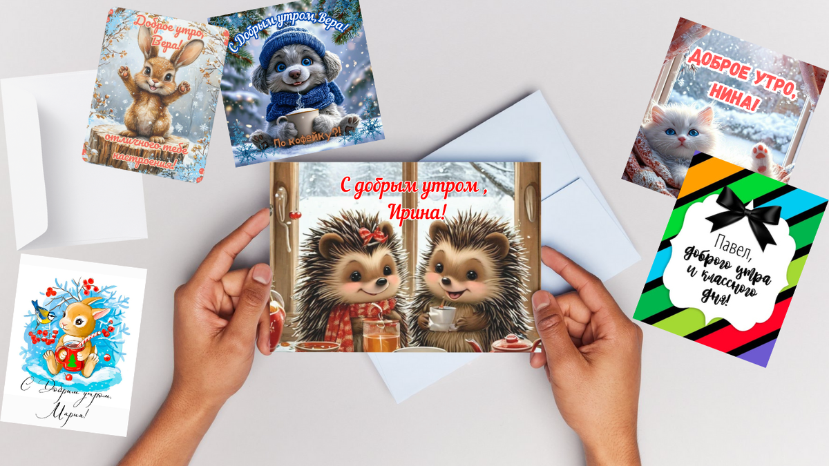 Именные открытки с тёплыми, искренними пожеланиями доброго утра! С яркими, позитивными картинками.