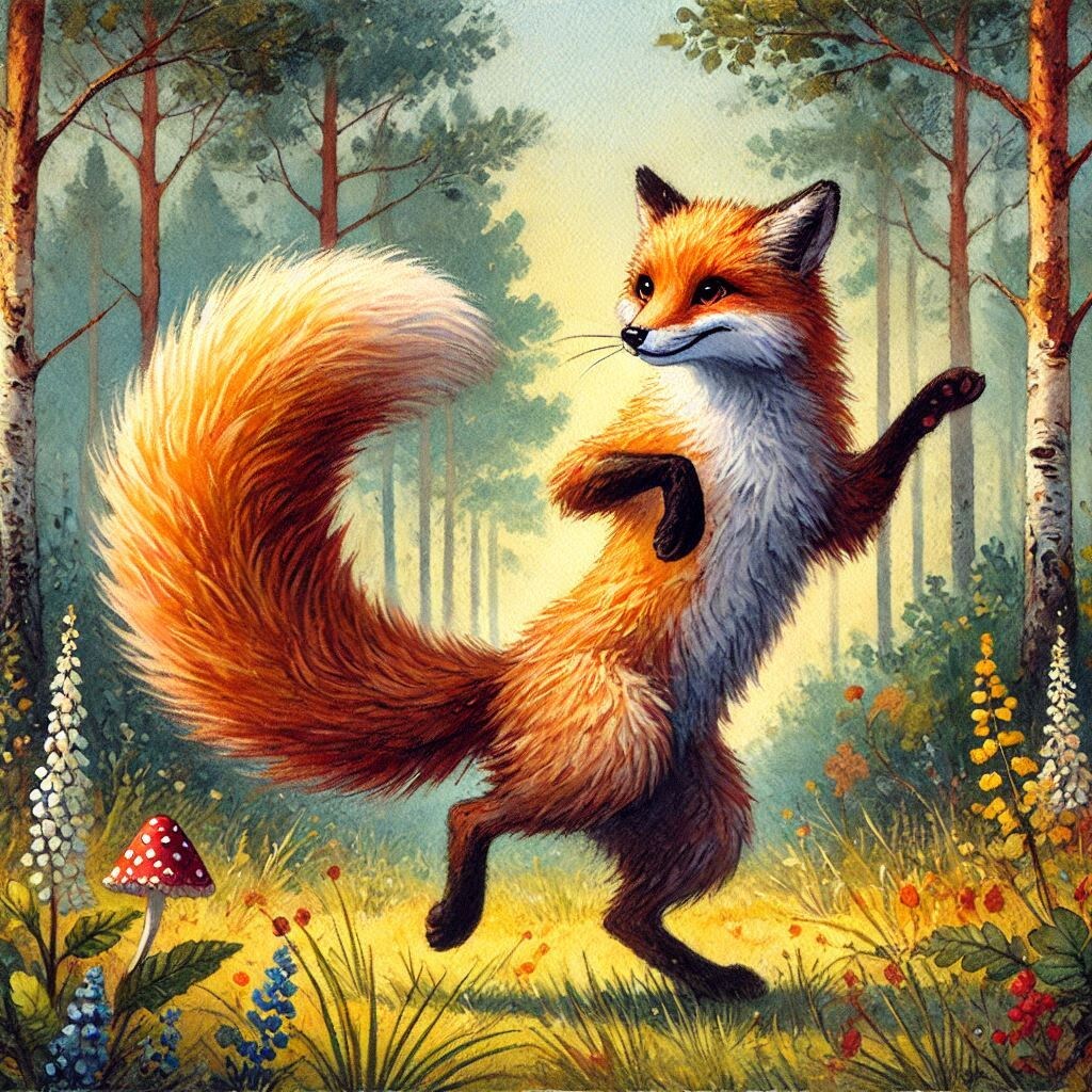 В один деревенский двор залетела Сорока. Она искала какую-нибудь блестящую вещицу: монету, цветное стёклышко или бусинку. Не найдя ничего подходящего, Сорока обратила внимания на сторожевого пса. Тот гонялся за собственным хвостом! - Шарик, ты зачем гонишься за собственным хвостом? - полюбопытствовала она. Пёс остановился и ответил: - Да от скуки, Сорока, от скуки! Кошка сидит дома, мне делать нечего… Могу за тобой погнаться и выдрать тебе твой длинный хвост! - Но-но! - насторожилась Сорока и на всякий случай переместилась на верхнюю ветку дерева. - Никогда не видела более глупого занятия! Сказав это, Сорока полетела обратно к себе в лес. Вскоре она увидела рыжую Лису. Она лежала, свернувшись на большом пне. Сорока решила подшутить над Лисой: - Лиса, вот ты лежишь и не знаешь про конкурс! - Какой конкурс? - спросила Лиса, приподняв голову. - Кто из животных поймает свой хвост, будет объявлен самым быстрым зверем на свете! - Да? - задумчиво произнесла Лиса. Потом соскочила с пня и стала