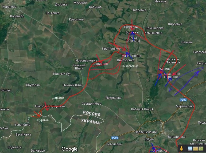 ВС РФ атакуют со стороны сел Новоивановки и Леонидово на Викторовку. ВСУ пытаются контратаковать в Махновке, возле Погребков, Новых и Старых Сорочин.