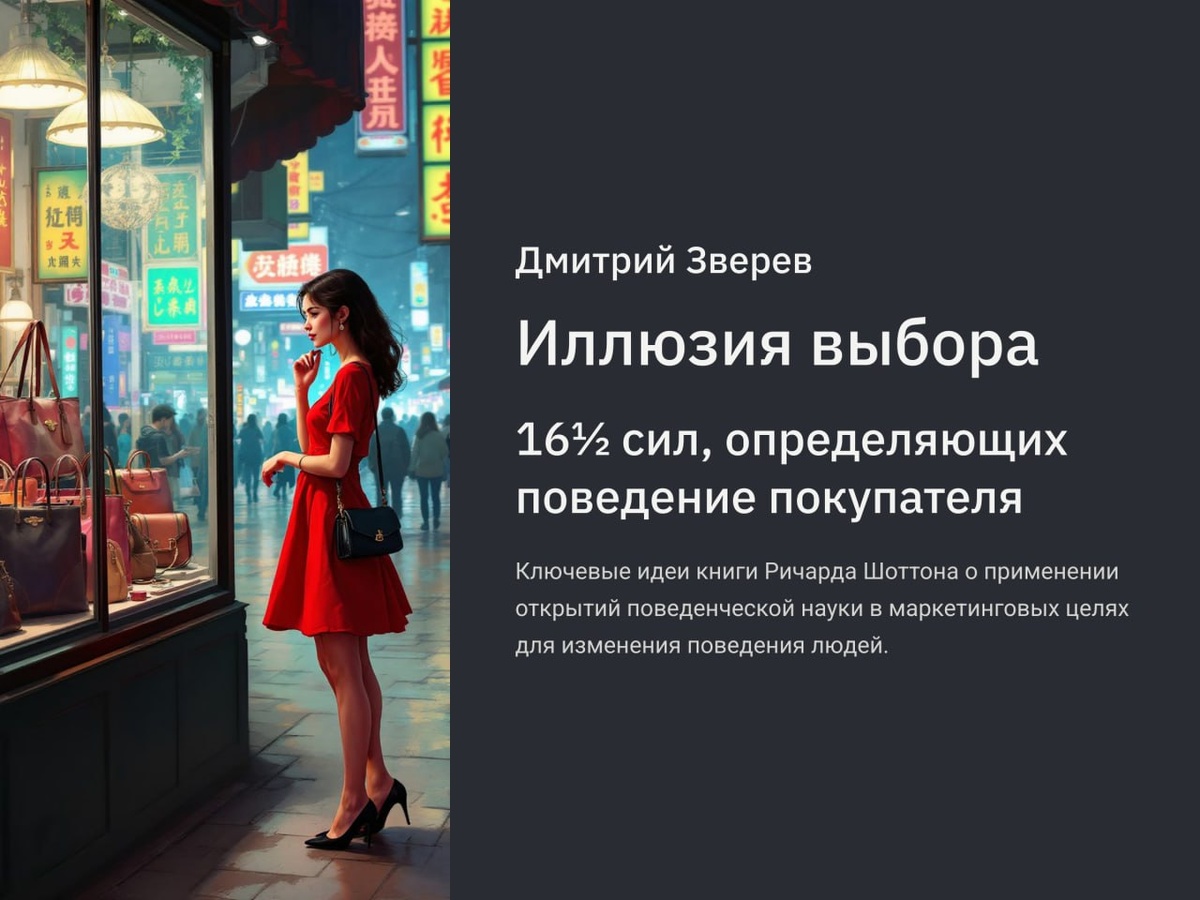 Сделал наглядные слайды по книге "Иллюзия выбора - 16½ сил, определяющих поведение покупателя"
