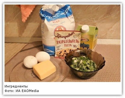 Для приготовления сырных оладий на кефире возьмём продукты по списку: