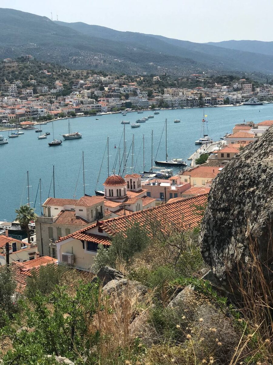 Порос. Одна из стоянок нашего маршрута по Сароническому заливу. В прошлом году мы путешествовали от турецкого Фетхие до Афин и обратно, с радостью делимся своими впечатлениями от захода на любимый остров Марка Шагала — Порос. Порос — ближайший к Пелопоннесу остров с одноимённым городом. От Пелопоннеса он отделён узким каналом, которым мы и прошли, заходя на якорную стоянку.